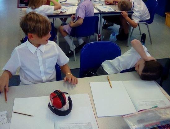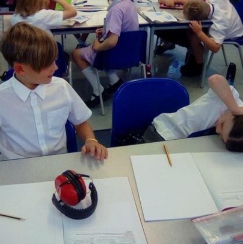 In our science lesson this week, we have continued our learning on sound. This week we were investigating how sound travels through different mediums (solids, liquids and gases). We tapped pens together in the air and thought about how clear the sound was. We then tapped pens on the desks whilst our ear was on the table to see if we could hear the sound travel through a solid.